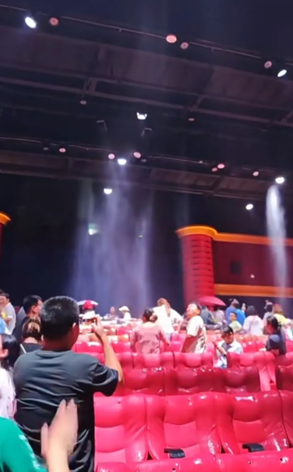 游客梁先生称,事发20日18时许,他观看最后一场演出时头顶突然喷水,持续一两分钟后工作人员才关停屏幕并疏散观众离场,他衣服裤子全部被淋湿。
